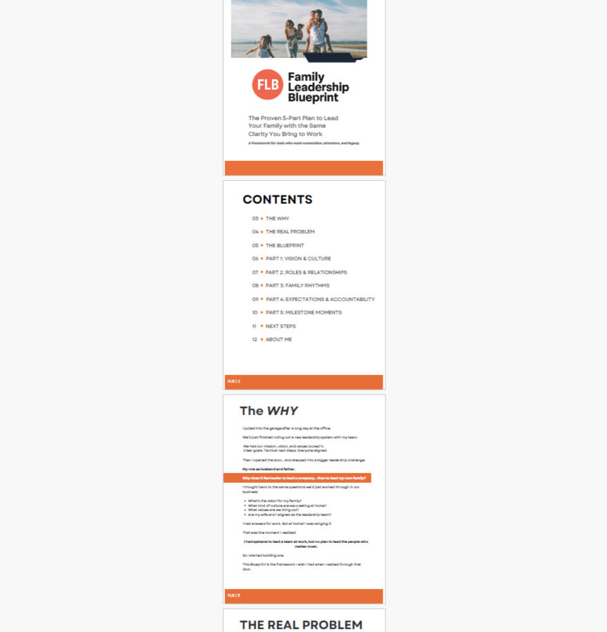 The Proven 5-Part Plan to Begin Leading Your Family with the Same Clarity You Bring to Work.This isn't marriage and parenting advice. It's a leadership framework adapted for the people who matter most.1. Vision & Culture